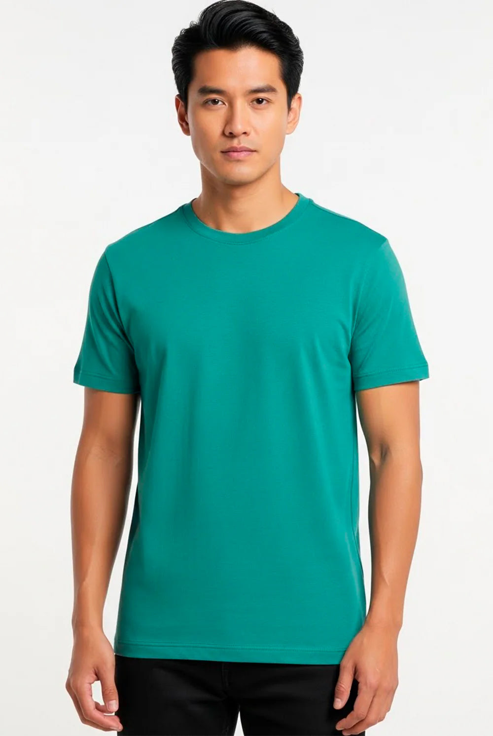 Camiseta básica, modelagem regular, gola redonda com reforço ombro a ombro.